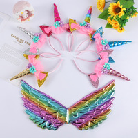 女の子の妖精の翼ユニコーン付きヘッドバンドセット女の子誕生日パーティープリンセスドレスアップアクセサリー