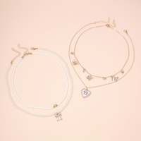 新デザイン4個セットチョーカーかわいいゴールド蝶真珠ビーズネックレスファッションエナメルハートラブチェーンネックレス